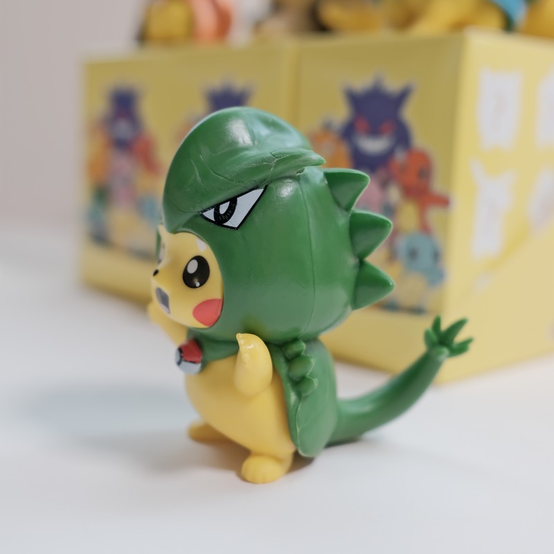 * Pikachu Gyarados – Pikachu khoác lên mình bộ trang phục của Gyarados huyền thoại với màu xanh nổi bật, thể hiện sức mạnh vượt trội.