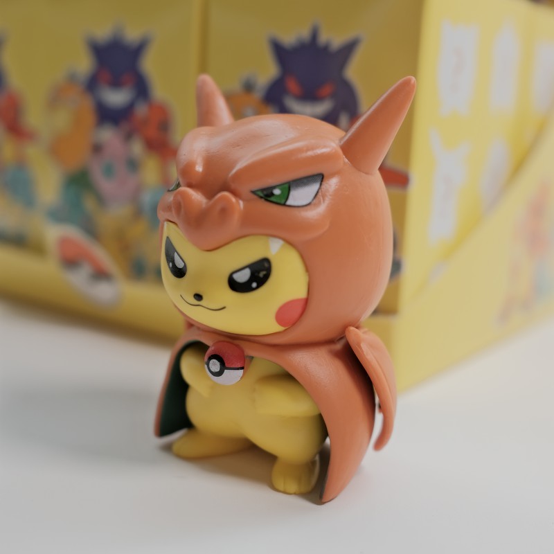 * Pikachu Charizard – Biến hình thành Charizard với bộ áo choàng cam rực lửa và ánh mắt đầy quyết tâm.